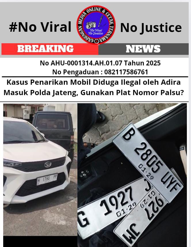 SotardugaNews.co.id, Semarang ][ 26 Mei 2025 (GMOCT) — Dugaan penarikan paksa mobil Daihatsu Xenia oleh Adira Finance pada 5 Maret 2025, kembali menjadi sorotan. Informasi yang diperoleh GMOCT (Gabungan Media Online dan Cetak Ternama) dari media online Jelajahperkara.com, anggota GMOCT, mengindikasikan kendaraan tersebut menggunakan pelat nomor palsu H 1780 PP. Kasus ini telah dilaporkan ke Subdit II Tipiter Ditkrimsus Polda Jawa Tengah.
