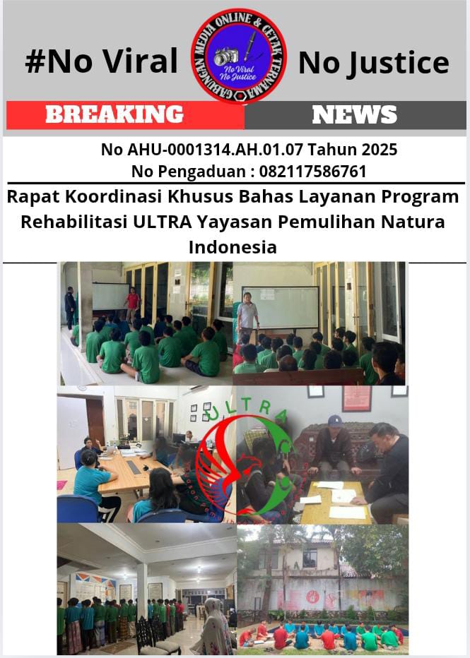 SotardugaNews.co.id, Jakarta (GMOCT) – Yayasan Pemulihan Natura Indonesia, khususnya Natura Indonesia Ultra Addiction Center yang beralamat di Jalan Pertanian Raya No.59 B, RT.004 RW.004, Kel, RT.4/RW.4, Lb. Bulus, Kec. Cilandak, Kota Jakarta Selatan, Daerah Khusus Ibukota Jakarta, baru saja mengadakan rapat koordinasi khusus membahas rancangan layanan program rehabilitasi ULTRA. Rapat ini dipimpin langsung oleh Ketua Yayasan, Ferdy Gunawan, dan bertujuan untuk mewujudkan visi dan misi layanan yang komprehensif dan berkesinambungan bagi para penerima manfaat khususnya para korban penyalahgunaan napza.
