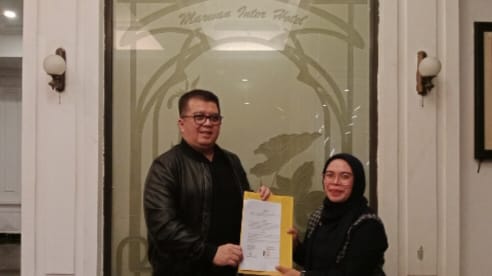 Wakil Rektor III (Warek III) Universitas Syekh Yusuf Al Makassari Gowa Bidang Kemahasiswaan, Alumni, Humas dan Kerjasama Andriani, SST, M.Kes memberikan Keterangan kepada awak media usai melaksanakan MOU kepada Pengusaha dan Profesional serta Pelaku UMKM yang tergabung dalam Pasar Digital Community (PDC) pada Selasa (27-05-2025) di Hotel Pangrango II, Kota Bogor, Jawa Barat.