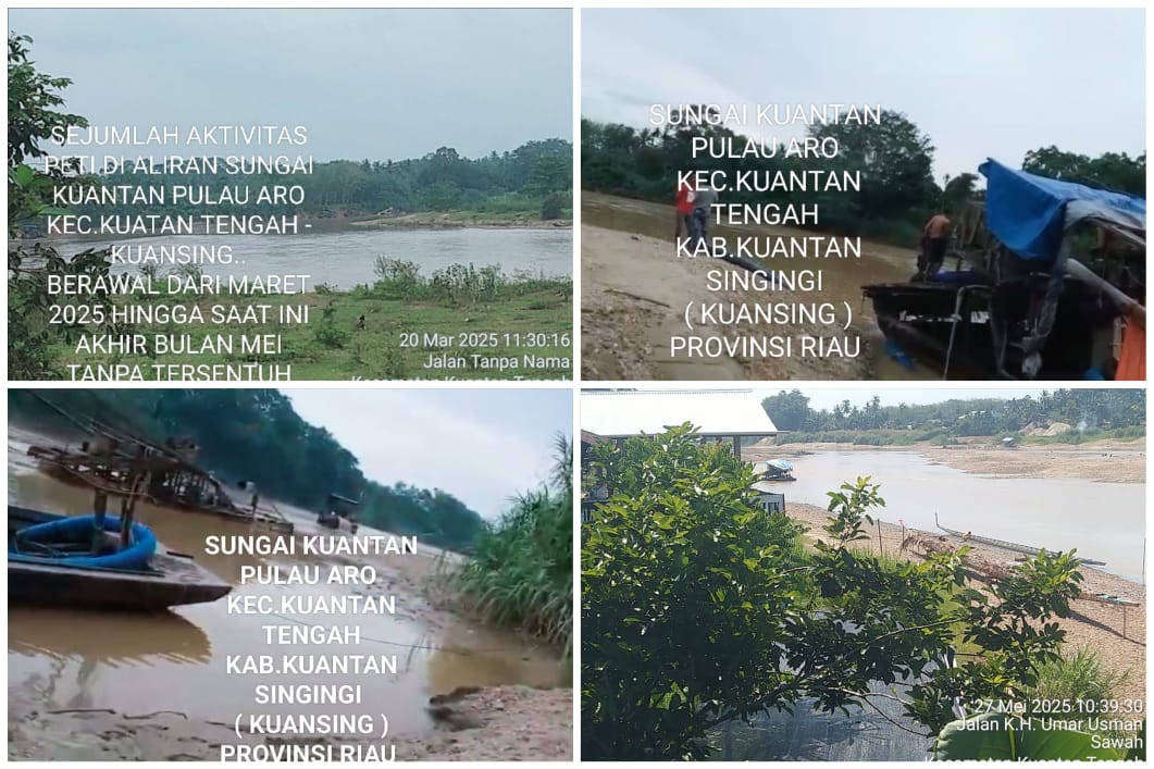 Selain itu, berapa hari lalu minggu 25/5/2025 terpantau sekitar 7 unit rakit PETI sedang beroperasi di Sebrang MASJID ALGANI Sebrang Taluk, Desa Sawa Kec.Kuantan Tengah. setelah diberitakan dan narasumber mengabarkan kembali pada selasa 27/5/2025 disertai bukti foto; Aktifitas PETI tersebut pindah ke Pulau Aro, aliran sungai kuantan. Sehingga aktivitas PETI di Pulau Aro semakin bertambah.