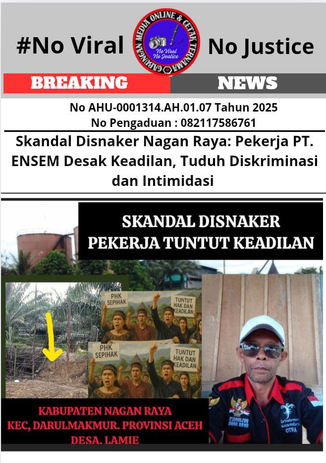 Skandal Disnaker Nagan Raya: Pekerja PT. ENSEM Desak Keadilan, Tuduh Diskriminasi dan Intimidasi