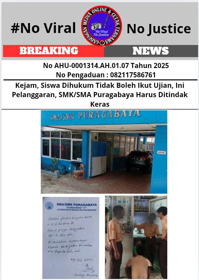 PublikBicaraNews.id, Bandung 13 Juni 2025 (GMOCT) – Siswa SMK/SMA Puragabaya di Jl. H. Yasin No. 59 Terusan Pasteur, Bandung, mengalami kesedihan mendalam setelah tidak diizinkan mengikuti ujian kenaikan kelas akibat belum membayar SPP dan uang ujian. Kejadian ini terjadi pada Rabu, 11 Juni 2025, dan menimbulkan keprihatinan di kalangan orang tua dan masyarakat.