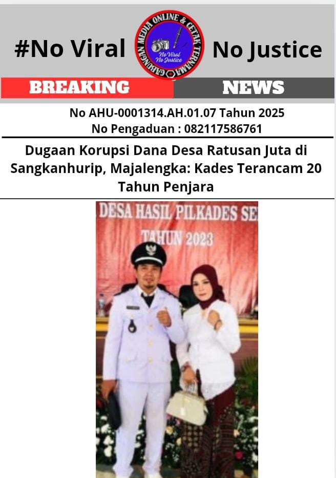PublikBicaraNews.id – Majalengka, Jawa Barat (GMOCT) 21 Juni 2025 – Kepala Desa (Kades) Sangkanhurip, Kecamatan Sindang, Kabupaten Majalengka, Toto, berpotensi menghadapi ancaman pidana berat setelah terungkap dugaan korupsi dana desa yang nilainya mencapai ratusan juta rupiah. Informasi ini diperoleh GMOCT (Gabungan Media Online dan Cetak Ternama) dari seorang aktivis anti-korupsi kenamaan Majalengka yang merupakan narasumber terpercaya.