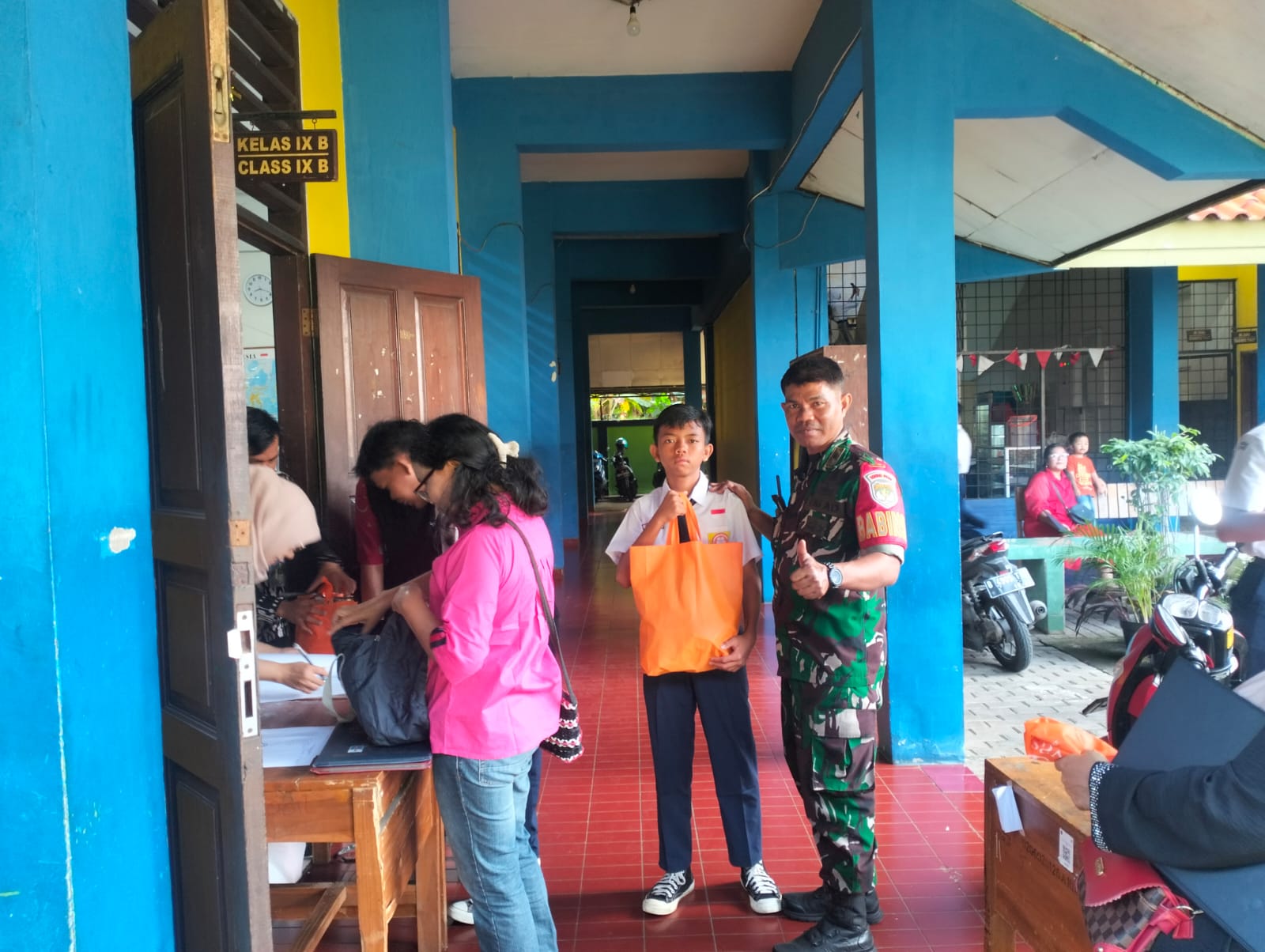 Dalam kegiatan penuh kepedulian ini, Babinsa Koramil 07/Cipayung Kodim 0505/Jakarta Timur, Pelda Anwar Ujang, hadir langsung mendampingi proses distribusi kepada 380 siswa yang menjadi sasaran program.