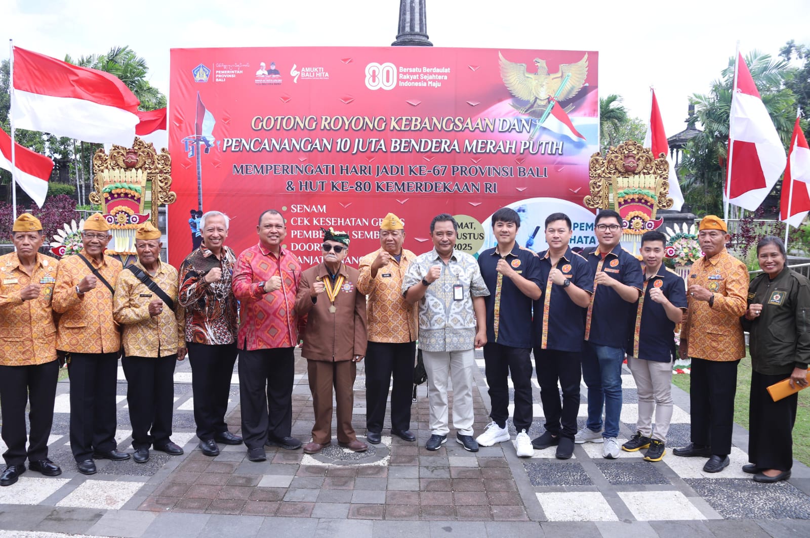 Selain pencanangan pembagian bendera, rangkaian kegiatan turut diisi dengan layanan pemeriksaan kesehatan gratis, senam sehat, pembagian sembako, serta lomba panjat pinang. Bahtiar pun menyampaikan apresiasi kepada Pemerintah Provinsi Bali atas dukungan penuh dalam menyukseskan acara ini.