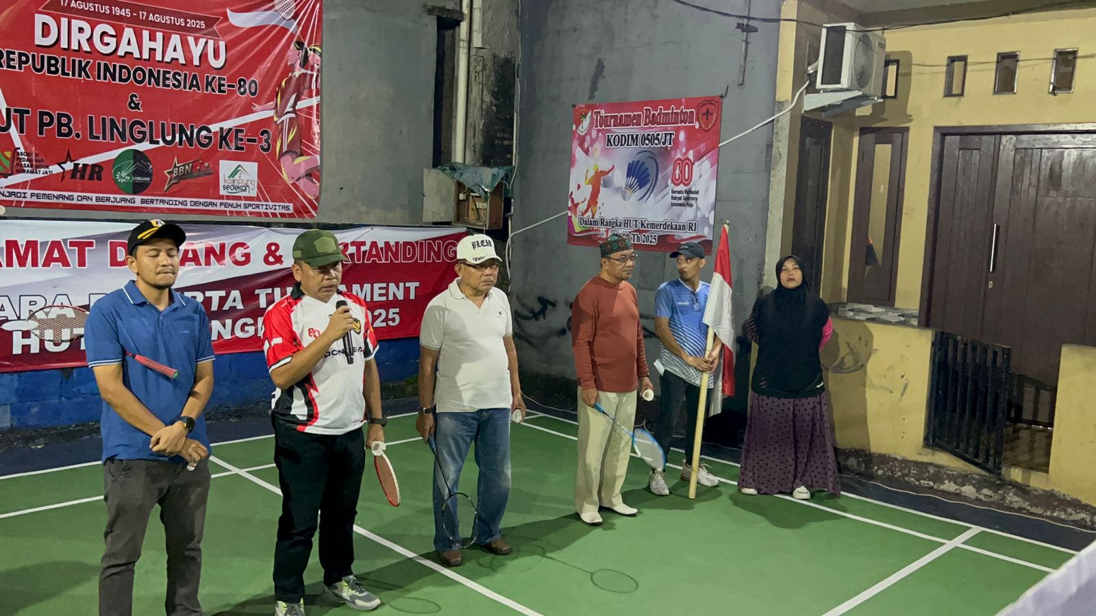 PublikBicaraNews.id, Kodim 0505/Jakarta Timur – Dalam rangka menyambut Hari Ulang Tahun (HUT) ke-80 Kemerdekaan Republik Indonesia, Danramil Pasar Rebo, Ciracas Mayor Inf Nawawi Afandi membuka Turnamen Badminton antar RT, di wilayah RW 02 Kelurahan Rambutan, Kecamatan Ciracas, Sabtu (2/8/2025).