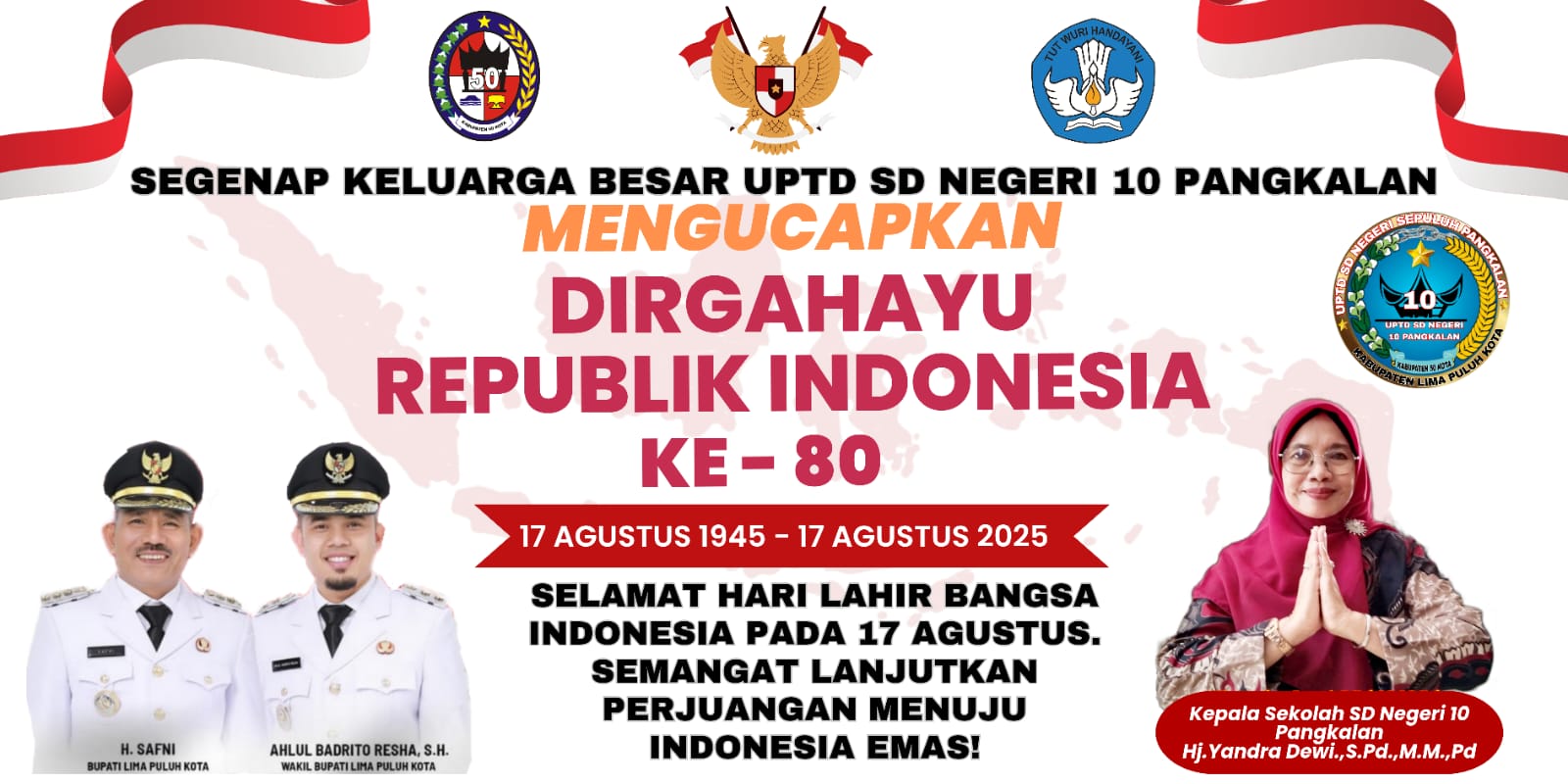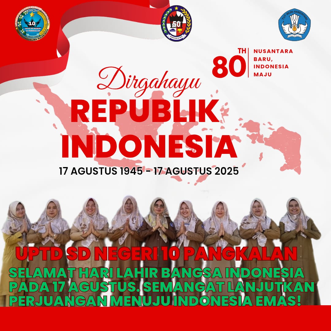 Segenap Keluarga Besar UPTD SD Negeri 10 Pangkalan Mengucapkan Selamat HUT Kemerdekaan RI Ke-80