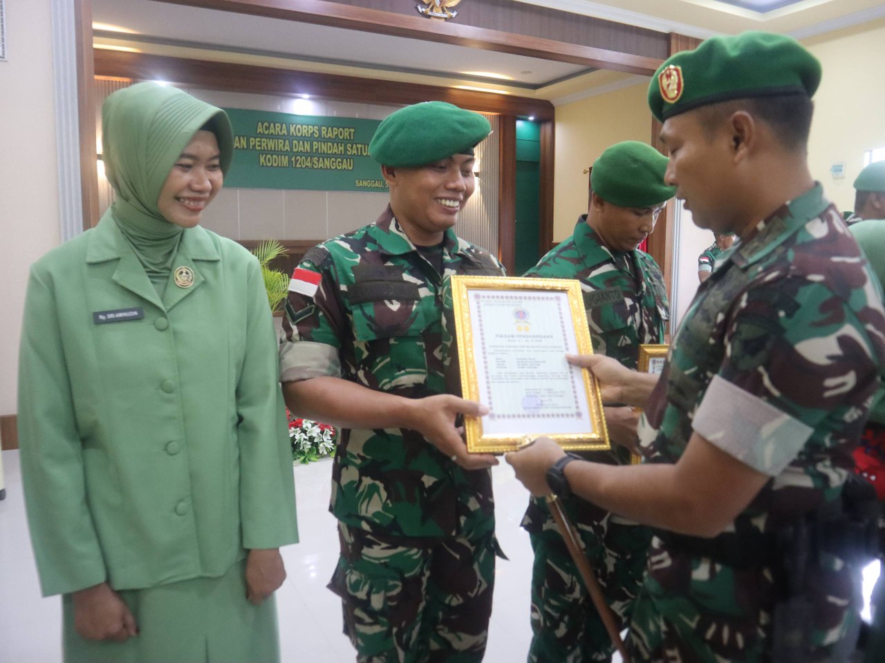 Dalam tradisi korp raport Dandim melepas serda edi eka,serda sugianto, serda aminudin Kusni, serda gusti randa, dan menerima perwira baru pindah tugas ke Kodim 1204/sanggau.