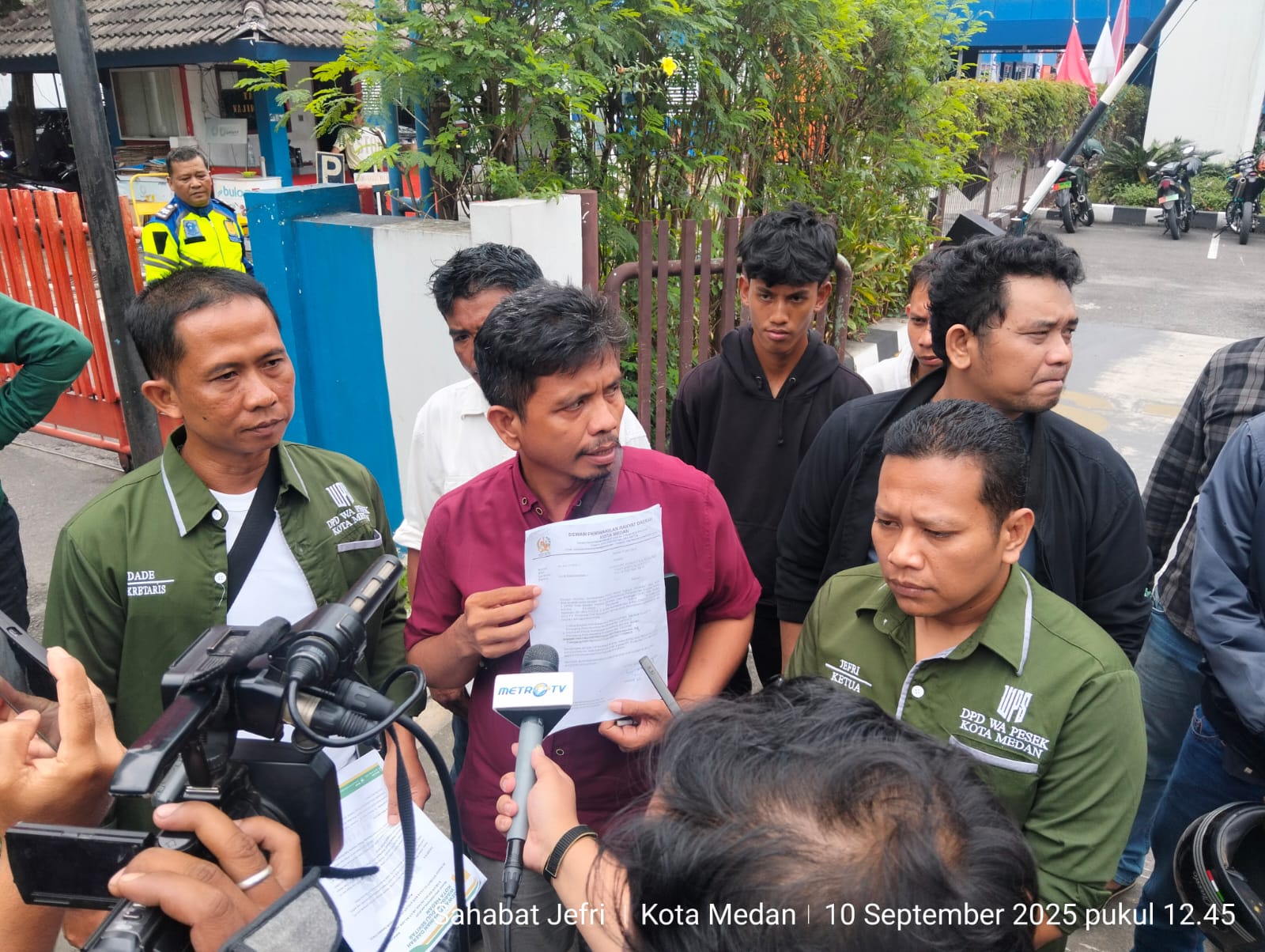 PublikBicaraNews.id, Medan ][ Ratusan massal aksi yang tergabung di Warga Peduli Sekitar (WA PESEK) gelar unjuk rasa didepan Kantor Otoritas Jasa Keuangan (OJK) Provinsi Sumatera Utara (Sumut), Jalan Gatot Subroto No.180, Sei Sikambing C. II, Kecamatan Medan Helvetia, Kota Medan, Sumatera Utara, Rabu (10/09/2025) pagi.