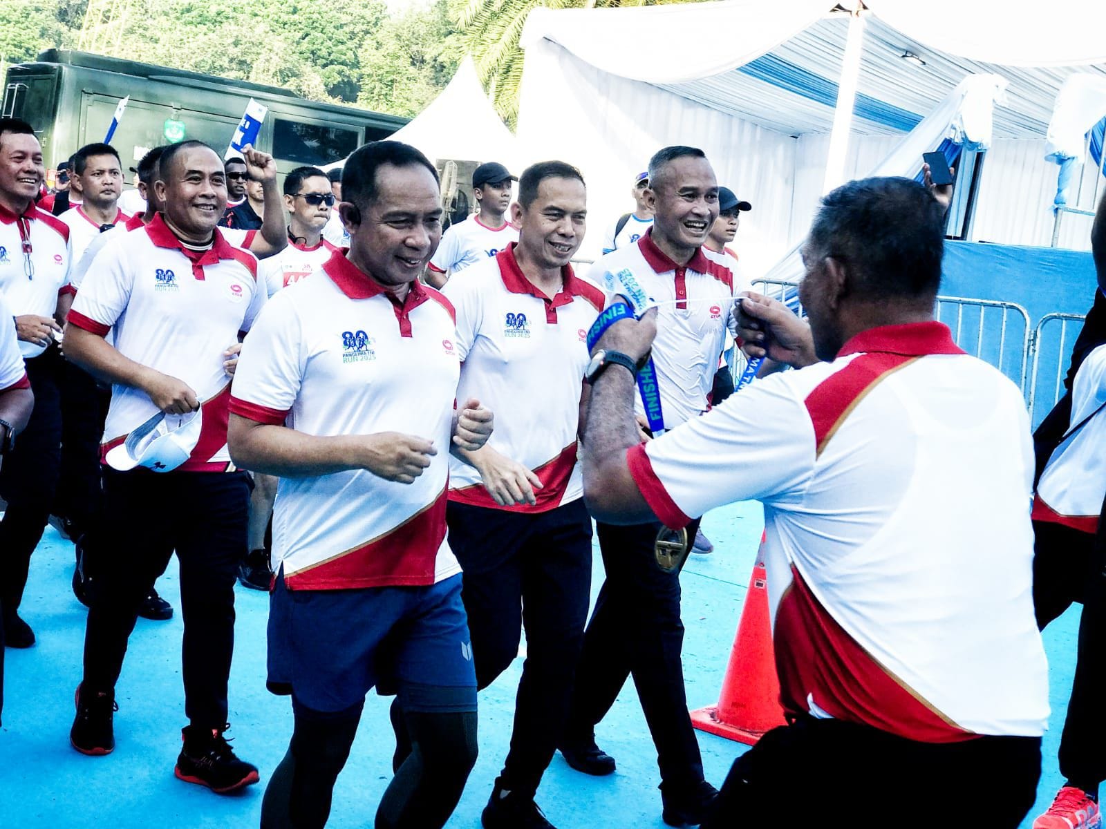 Dengan penuh antusias, para peserta dari berbagai kalangan mulai dari masyarakat umum, pelajar, hingga prajurit TNI dan Polri berlari bersama. Panglima TNI Jenderal TNI Agus Subiyanto pun turut ambil bagian dalam lari ini, menyatu dengan ribuan peserta di lintasan. Ajang ini tidak hanya menjadi wadah sportivitas dan gaya hidup sehat, tetapi juga mencerminkan semangat persatuan dan kecintaan kepada Tanah Air.