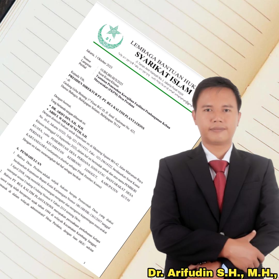 PublikBicaraNews.id, Kutai Kartanegara – Lembaga Bantuan Hukum (LBH) Syarikat Islam melayangkan somasi tegas kepada PT. Rea Kaltim Plantations terkait dugaan pengabaian hak masyarakat di beberapa desa di Kecamatan Kembang Janggut, Kabupaten Kutai Kartanegara (Kukar). Perusahaan perkebunan kelapa sawit (PMA) ini dituntut untuk segera memenuhi kewajiban Fasilitasi Pembangunan Kebun Masyarakat (FPKM).