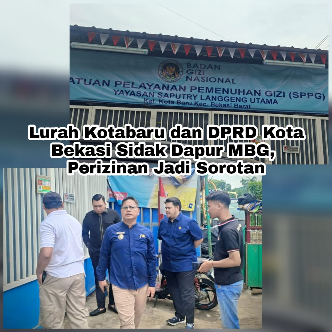 PublikBicaraNews.id – Kota Bekasi, 3 Oktober 2025 – Menyusul insiden dugaan keracunan yang dialami sejumlah siswa SDN Kotabaru 3 pada hari Kamis (2 Oktober 2025), Lurah Kotabaru, Agus H Mamun, S.Sos.i, N.Lp, bersama anggota DPRD Kota Bekasi melakukan inspeksi mendadak (sidak) ke dapur penyedia program Makan Bergizi Gratis (MBG) di Jl. Regency, Kotabaru, Bekasi Barat, kemarin. Sidak ini bertujuan untuk memastikan standar keamanan dan perizinan dapur MBG terpenuhi.
