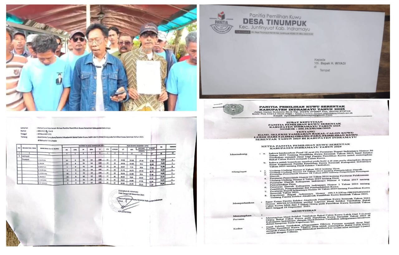 PublikBicaraNews.id, INDRAMAYU ][ Bakal Calon Kuwu Desa Tinumpuk, Kecamatan Juntinyuat, Kabupaten Indramayu, H. Wiyadi (60), resmi mengajukan surat keberatan kepada Panitia Pemilihan Kuwu (Pilwu) Desa Tinumpuk dan Panitia Pilwu Kabupaten Indramayu. Keberatan itu disampaikan terkait penilaian unsur pengalaman lembaga pemerintahan dalam seleksi tambahan calon kuwu yang dinilai merugikan dirinya.