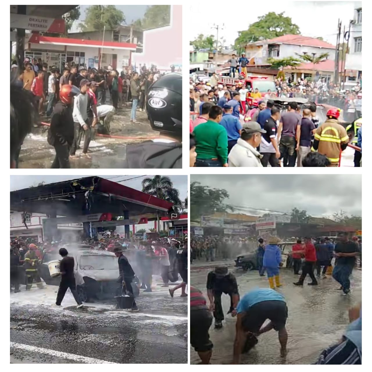 Warga yang menyaksikan kejadia api melahap mobil, disertai yang membuat para pengendara dan petugas SPBU berhamburan menyelamatkan diri. Petugas pemadam kebakaran tiba beberapa menit kemudian untuk mengendalikan si jago merah agar tidak meluas ke permukiman warga. Hingga kini, penyelidikan penyebab pasti kebakaran masih dilakukan oleh pihak kepolisian.