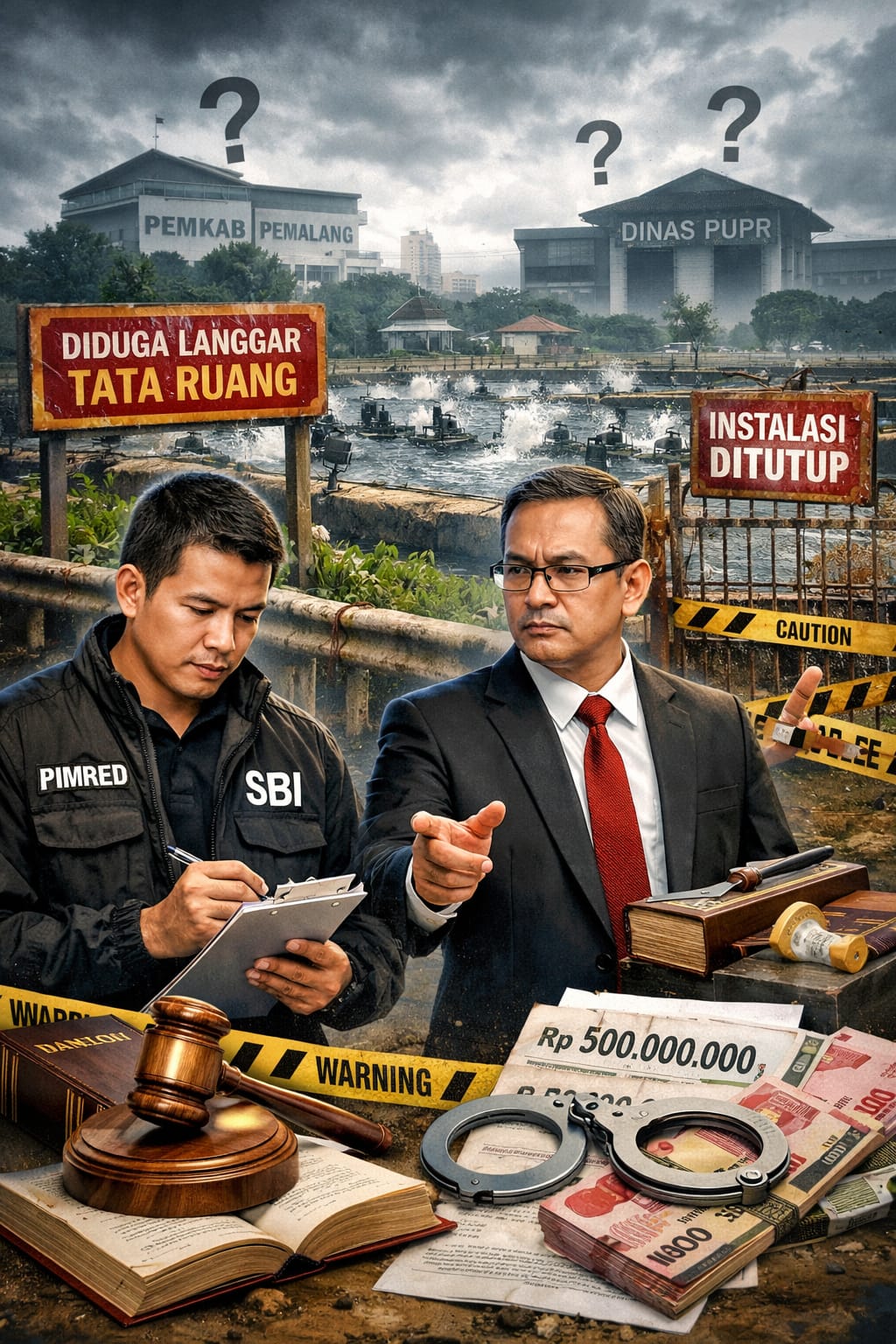Pemalang, PublikBicaraNews.id ][ Pemimpin Redaksi SBI, Agung Sulistio, bersama Bambang L.A. Hutapea, S.H., M.H., C.Med, selaku kuasa hukum Kepala Desa Nyamplungsari, Kecamatan Petarukan, Kabupaten Pemalang, secara tegas menyoroti lambannya respons Pemerintah Kabupaten Pemalang dan Dinas Pekerjaan Umum dan Penataan Ruang (PUPR) terkait keberadaan dan aktivitas tambak udang vaname yang diduga melanggar ketentuan tata ruang.