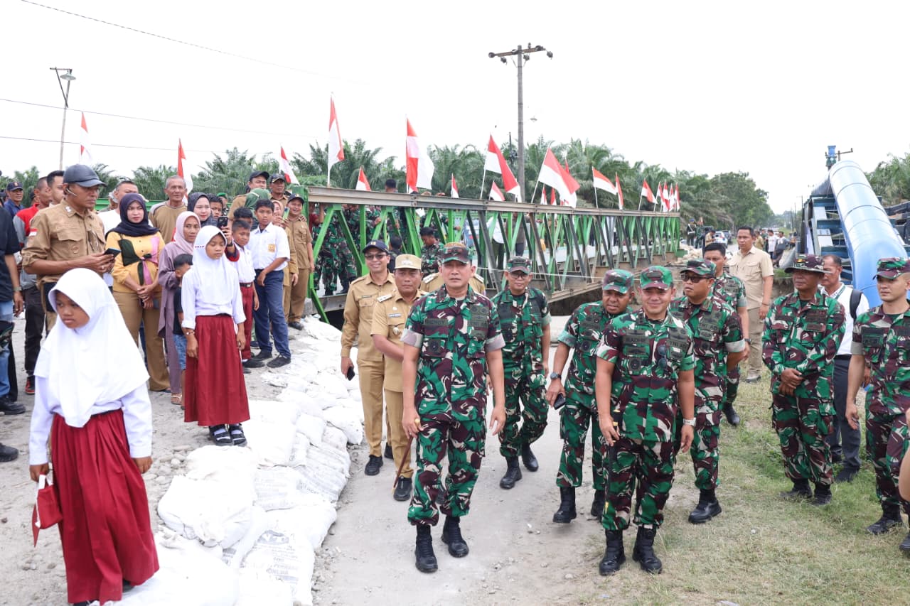 Panglima Kodam I/Bukit Barisan berserta rombongan tinjau Jembatan Super Compact 200 tipe 1-1 Yang selesai dibangun oleh Yonzipur 11/DW dan PU