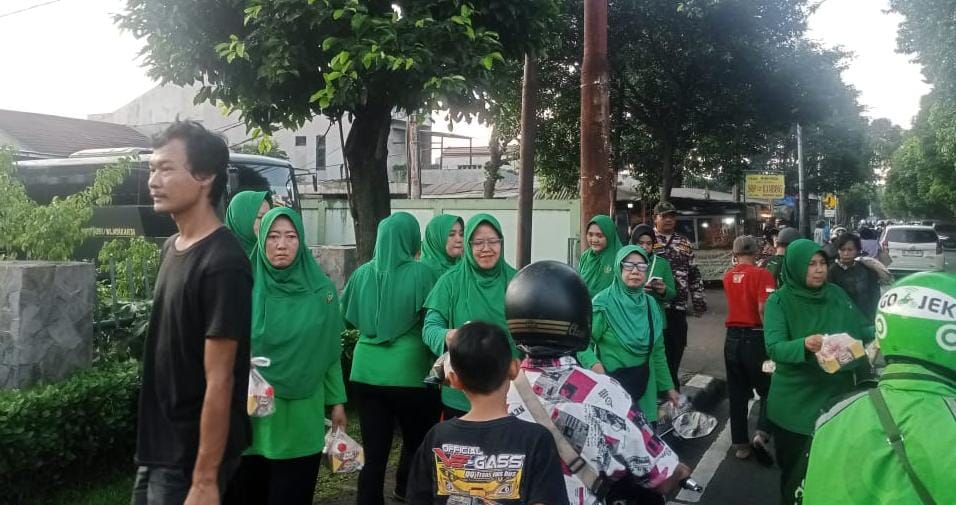 Tebar Berkah Ramadhan, Persit KCK Ranting 4 Koramil 03/Ps.Rebo–Ciracas Bersama FKPPI Bagikan Takjil kepada Warga Sekitar.