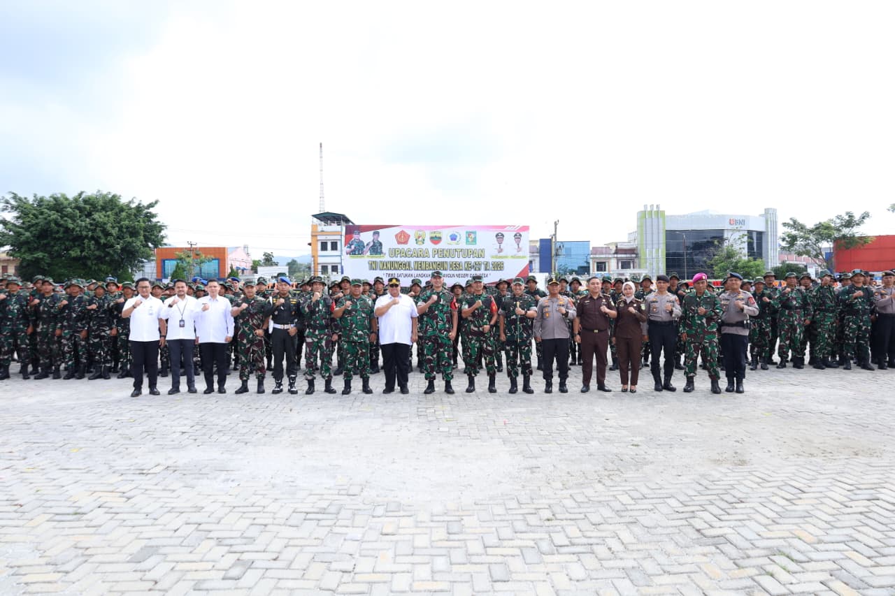 PublikBicaraNews.id, Simalungun – Pangdam I/Bukit Barisan Mayjen TNI Hendy Antariksa memimpin upacara penutupan TNI Manunggal Membangun Desa (TMMD) ke-127 Tahun Anggaran 2026 di Lapangan Kantor Bupati Simalungun, Kabupaten Simalungun, Rabu (11/3/2026). Sebelum upacara dimulai, Pangdam I/BB beserta rombongan disambut secara adat di Kantor Bupati Simalungun melalui penyematan ulos oleh tokoh adat, yang dilanjutkan dengan tarian persembahan khas daerah.