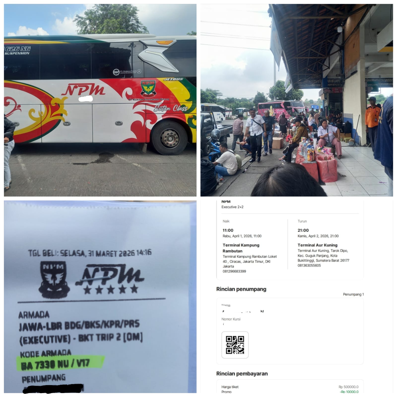 PublikBicaraNews.id, Jakarta | Saya memesan tiket keberangkatan dari Kampung Rambutan ke Bukittinggi pada tanggal 31 Maret 2026 untuk tanggal 1 April 2026 jam pemberangkatan 11.00 wib . Saya memesan melalui aplikasi Red Bus seharga 500 ribu rupiah.