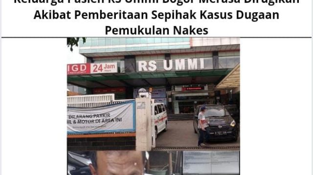 Tag: Keluarga Pasien RS Ummi Bogor Merasa Dirugikan Akibat Pemberitaan Sepihak Kasus Dugaan Pemukulan Nakes