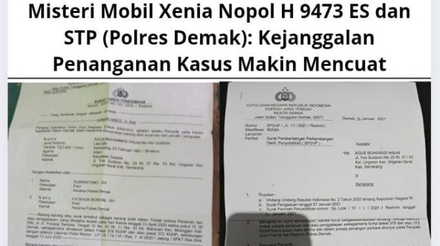 Tag: Misteri Mobil Xenia Nopol H 9473 ES dan STP (Polres Demak): Kejanggalan Penanganan Kasus Makin Mencuat