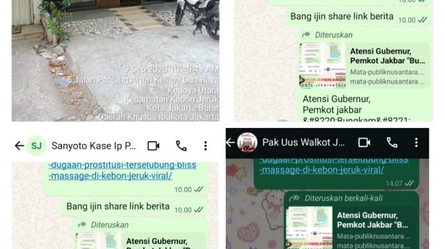Tag: Viralnya Dugaan Prostitusi Terselubung Bliss massage tanpa Ijin Di Kebon Jeruk Pemkot jakbar “Mandul” Ada Apa ?????